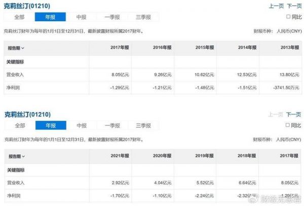 2013年到2021年,克莉丝汀营收逐年递减,归母净利润更是持续处于亏损状态,9年时间累计亏损超13亿元。