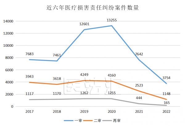 2017~2022年医疗损害责任纠纷案件数量统计,图源医法汇