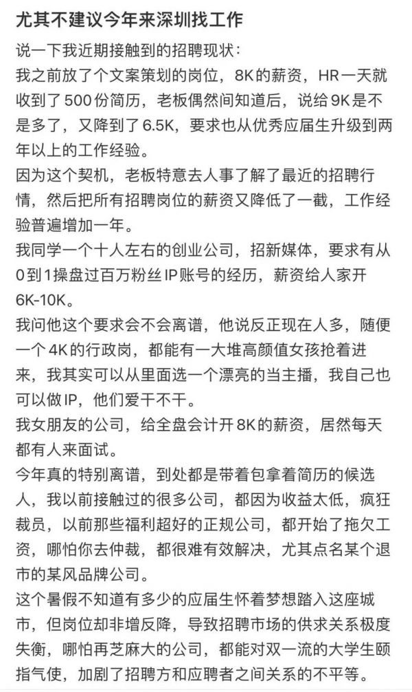 虽然我心里窃喜,因为这意味着同样的钱能招到比往年更优秀的人,但是在挂掉电话后,我又开始难受。