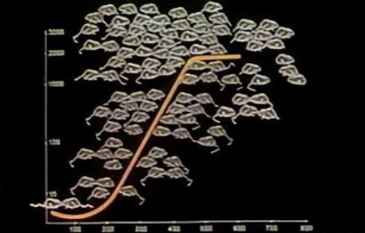于是从第315天开始,鼠群数量从55天增长一倍,迅速减缓至145天一倍。