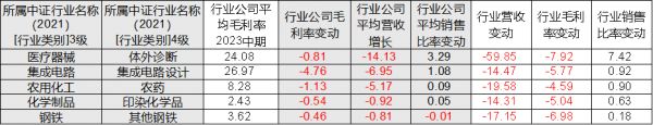 第二步,我们筛选出这样的行业:行业整体营收下降;行业整体毛利率下降;行业销售费用比率上升。