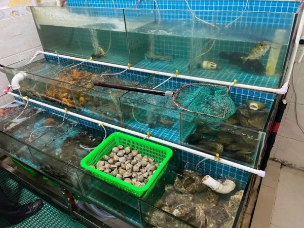 他在距离较场尾沙滩一公里的地方,开了一间“渔民海鲜餐厅”。餐厅总面积大概20平,摆着四五张桌子和一个大水缸,分隔着各种各样的海鲜:石斑、螃蟹、皮皮虾、生蚝、毛蛤、扇贝、青口......