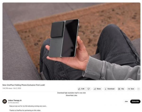 在接受 YouTube 频道 Unbox Therapy 主持人 Lewis Hilsenteger 的采访时,刘作虎表示一加拥有 600 多项与铰链相关的专利。他们决定采用无缝隙的铰链设计,就像 OPPO Find N2 那样。不过,新机比 Find N2 中的铰链小 37%,部件数量减少了 31 个。