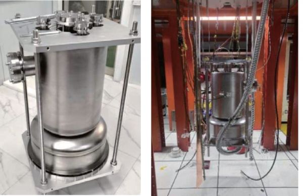 正在建设中的高能同步辐射光源是我国的第一个高能光源,也是目前世界最亮的光源,这对光源的高频系统也提出了很高的要求。光源的高频系统采用的是166.6 MHz 和500 MHz 的超导高频腔。特别是166.6 MHz的超导腔,原本是只用于加速质子,在光源里创新性地用于加速电子,做了许多改进,目前已研制成功。目前,首支166.6 MHz超导腔垂测达标(图4);首批166.6 MHz 超导腔高功率耦合器也完成加工制造并测试达标。