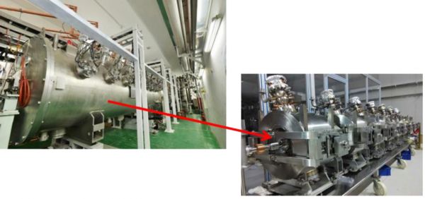 当时,国际上已有的技术对我们是封锁的。我们专项团队经过近七年努力,成功研发了具有国际创新性的首个由14 个极低β值轮辐型射频超导腔系统集成的毫安级连续波超导质子直线加速器(图3),成功实现了10 mA/10 MeV 的设计目标,掌握了系统设计理论和多系统集成及调试方法,成功验证了ADS轮辐型超导加速器的技术路线,在多项核心技术方面实现了国际性突破,是我国质子超导加速器的一个重要里程碑。研发出的指标领先的极低β值spoke 腔造价是国际报价的二十分之一。这一成果在国际上产生了重要影响,关键技术应用于众多项目上。