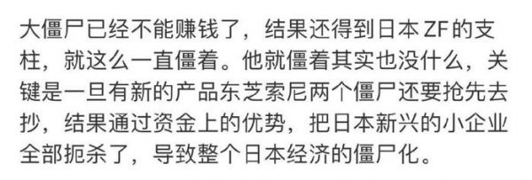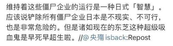 这算是一个折中之法,让这些老家伙们有机会再度焕发生机;员工也依然有工作,不至于寻死觅活;日本银行和政府也不至于被这些僵尸拖死,算是皆大欢喜。