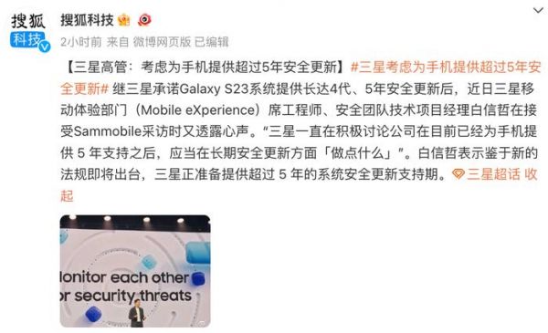 三星移动部门首席工程师:正考虑为手机提供超过5年安全更新支持