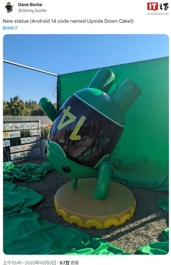 IT之家 10 月 9 日消息,谷歌近日正式推送了安卓 14 系统,各大手机厂商的升级也将陆续到来。为了庆祝这一时刻,谷歌公布了一座新雕像来纪念安卓 14。