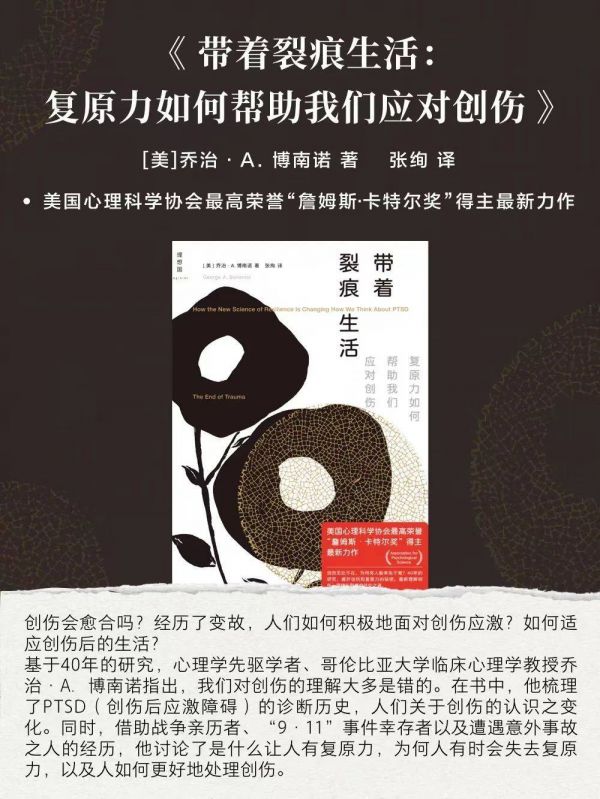 哥伦比亚大学教育学院临床心理学教授乔治·A.博南诺在他的著作《带着裂痕生活:复原力如何帮助我们应对创伤》一书中,提出了灵活性思维的概念,为我们提供了面对生活的新视角,让我们有能力缝合过去的创伤,面对当下的困境。