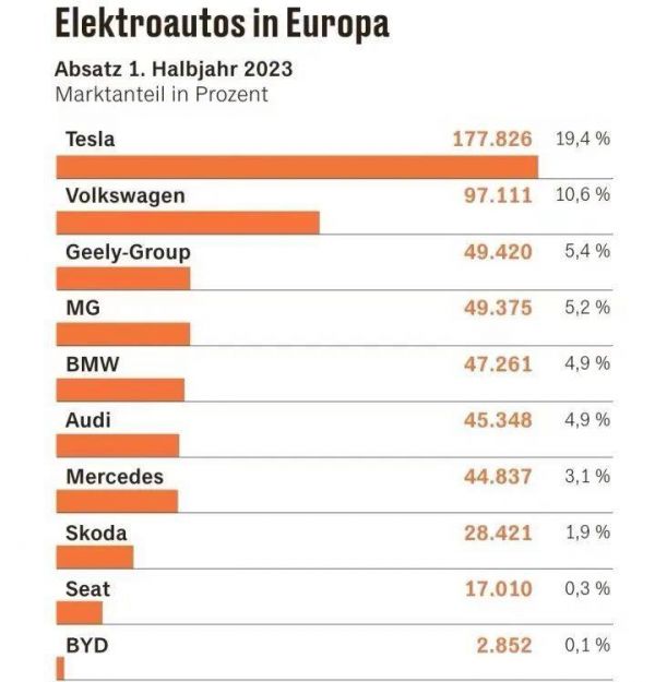 还有欧洲研究机构指出,今年上半年中国制造的汽车已占到汽车大国德国电动汽车销量的11.2%。