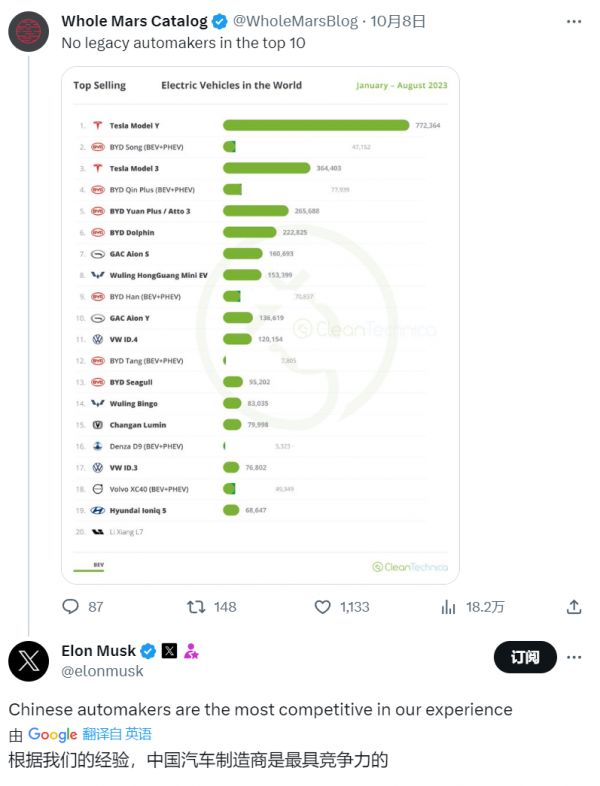 这两年,马斯克对中国总是不吝赞美之词,不仅是因为上海工厂够给力,也因为国产车与日俱增的竞争力。