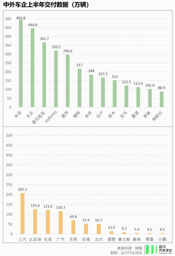 只不过,汽车产业终究是一场全球化的规模游戏,从上半年的交付数据来看,在国内市场愈战愈勇的自主车企们,在规模上与老牌国际车企仍有不小差距。