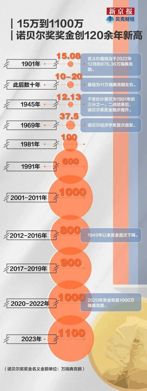 四、15万到1100万,诺贝尔奖奖金创120余年新高