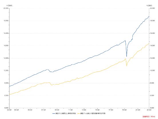 美国消费支出在 GDP 中占到接近七成,所以理论上只要美国人还在买买买,美国经济就还有韧性。