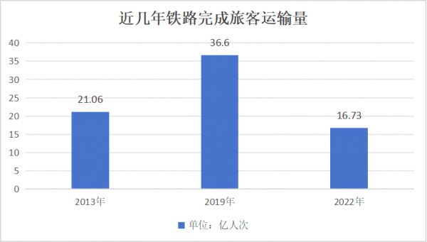 从铁路历年完成旅客运输量数据看,2013年为21.06亿人次,2019年为36.60亿人次。