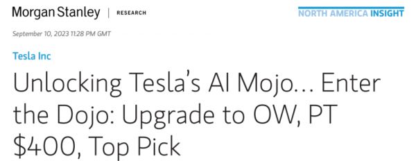 [3] Unlocking Tesla’s AI Mojo… Enter the Dojo: Upgrade to OW, PT$400, Top Pick,摩根士丹利