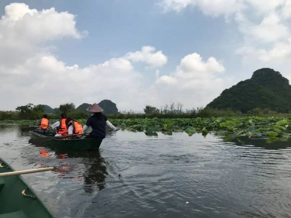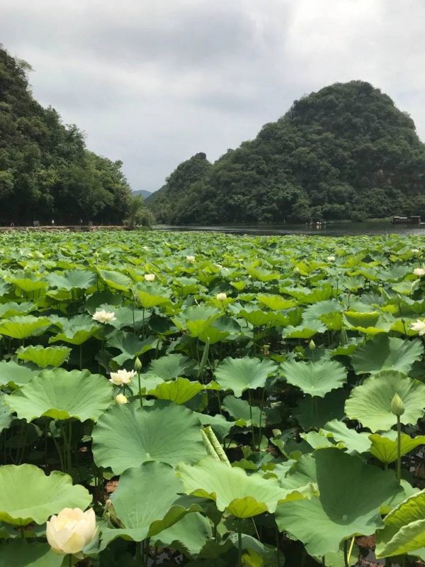 夏日湖面上荷花盛开,乘上柳叶小舟与船工一同撑篙摇桨,从蒲草塘码头划到青龙山码头,整整1小时都沉浸在湖光山色与荷花香气里,看座座喀斯特独峰如同漂浮在水面上。