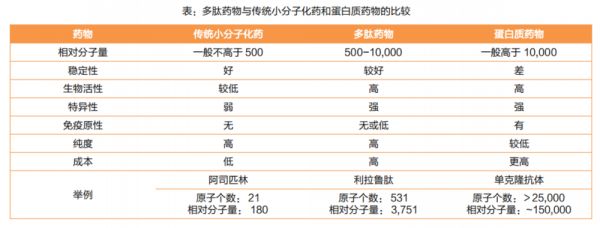 所谓多肽药物,是指由多个(通常10~100个)氨基酸链接而成的化合物,主要通过动植物中提取、化学合成和基因重组三种方式来制备。多肽药物许多性质都介于化药和蛋白质药物之间,销售额一度也在夹缝中生存——占整个制药市场的比重不过5%。