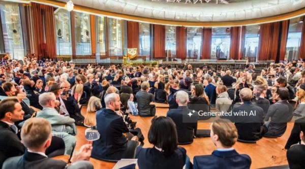 用提示词“衣冠楚楚的人在代码大会上席地而坐”生成的图片|Getty Images
