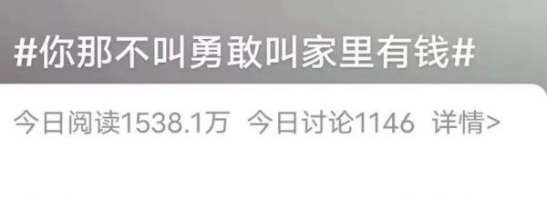 “你那不叫勇敢,叫有钱”登上热搜前列的那刻,大约不少普通人会产生终于有人戳破这假象的感慨。