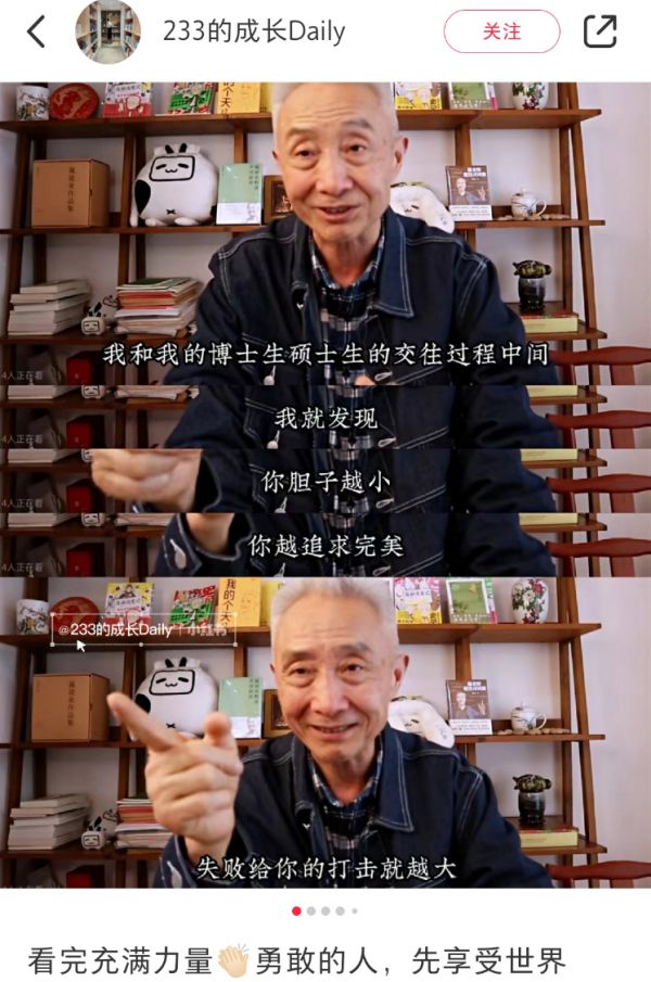当时这段视频颇为出圈,戴建业以教学经历举例,发现年轻人胆子越小、越追求完美、越害怕出错,有时会被畏缩困住。