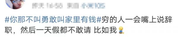 只是这份“勇气”,对于当前无法辞职、但凡出现工作空窗期存款就会耗尽的人来说是毫无意义的。