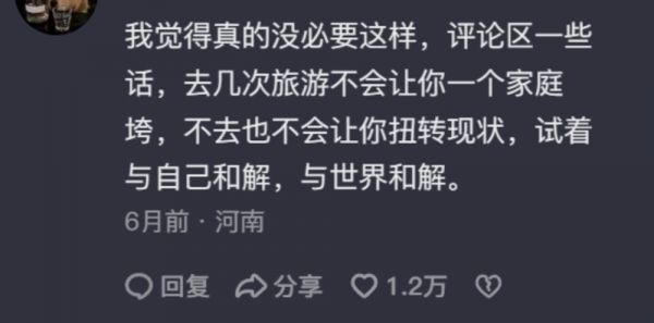 “一次旅游而已,不至于让一个家庭倾家荡产。怎么就默认旅游是不承担家庭责任、又或是买房买车就不能旅游呢?”