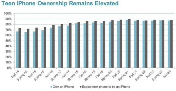 调查显示苹果iPhone继续称霸美国青少年市场,占据八成以上份额