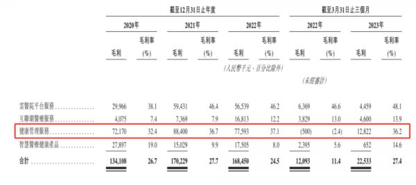 在毛利层面,体检业务的重要性被进一步放大。2020年、2021年和2023年Q1,东软熙康体检业务在公司毛利中的占比分别高达53.8%、51.9%和56.9%,为公司贡献了半数以上的毛利润。而近年营收提升迅速的互联网医疗服务业务,其毛利率却不足15%,所贡献的毛利润与体检业务有极大的差距。