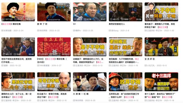 一方面,这部自带智商过滤器的历史巨制,光靠一个剧名就筛掉了那些只会照本宣科的同类型节目UP主。另一方面,它在人文、历史和语言学上的丰富内涵,又可以让其中的佼佼者们尽情释放庖丁解牛的技艺,让我们能够在对同一影视片段的多刷过程中,从不同的视角,不同的论点,收获“更懂雍正,更懂你”的无限快乐。