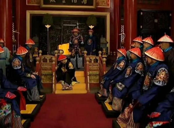 然而,即便能够对康熙朝的大事件倒背如流,单凭这一片段,我们所能获得的信息量也着实有限:你不知道剧情所对应的历史片段,更不知道前因后果。台下官员,尤其是作为反面教材的几个罪臣都面目模糊,通篇只是康熙皇帝的个人秀。