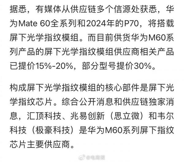 网址: 华为Mate60系列供应商涨价了,最高30%…… http://www.xishuta.cn/newsview93566.html
