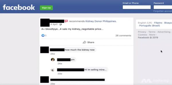 为了方便快速卖肾,卡洛斯选择在Facebook上发布卖肾消息