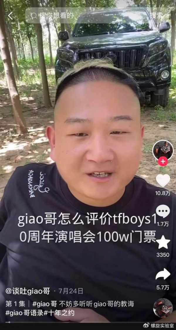 但是如今在网络上再刷到Giao哥的直播,相信很多人都会有些意外,曾经那个在小树林里装疯卖傻的光头小伙已经消失不见,取而代之的则是一位衣着光鲜、侃侃而谈的“人生导师”。