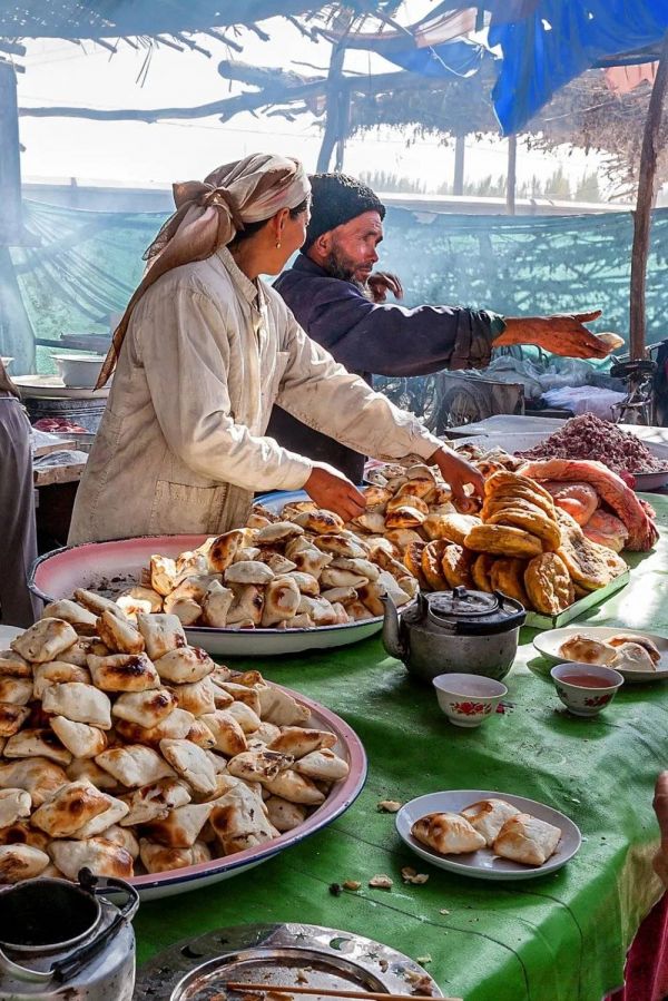 新疆人自己都说不清楚,他们究竟有多少种馕。大的、小的,薄的、厚的,甜的、辣的,圆的、异形的,带馅儿的、不带馅儿的……在广袤的新疆大地上,馕,以绝对优势占据了新疆人的早餐食谱。