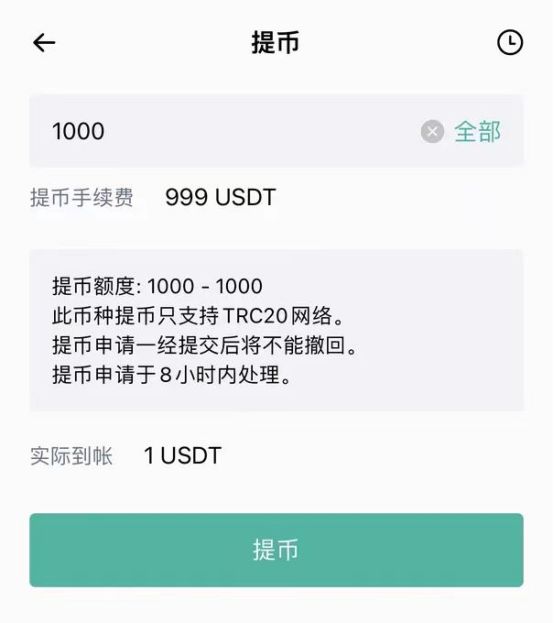 9月13日,证监会公开点名警告JPEX未获颁牌照,且平台自身和“向香港公众积极推广JPEX的人士和兑换店”涉及至少6项可疑经营手法。次日,有用户发现,平台的提现额度被限制在1000 USDT,另外还需支付高达999 USDT的手续费。用户质疑,这不是等同于变相停止提现吗?