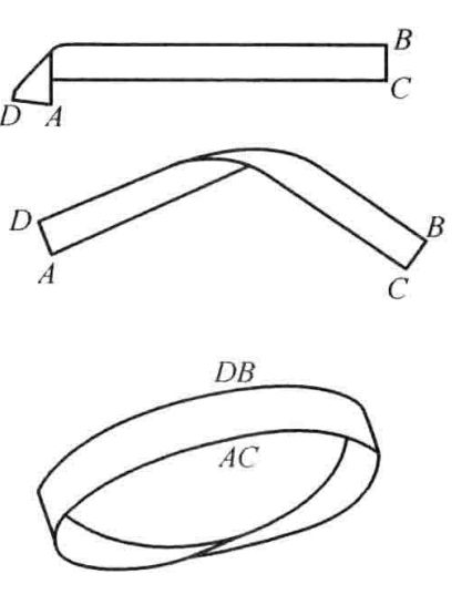 用细长纸带制作莫比乌斯环 | 图源:图书《从麦比乌斯到陈省身:麦比乌斯变换与麦比乌斯带》,刘培杰,哈尔滨工业大学出版社