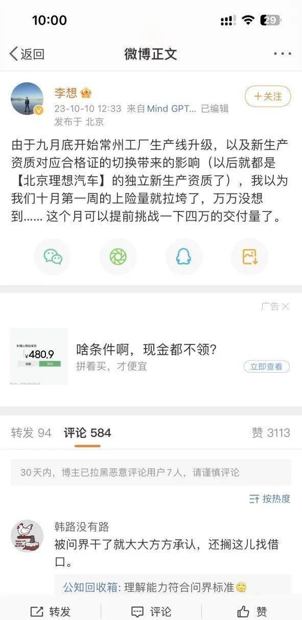 这样的数据真的能把人给吓到。李想就着急忙慌地表示,产能需要调整,未来还会把属于理想的市场份额给赢回来。