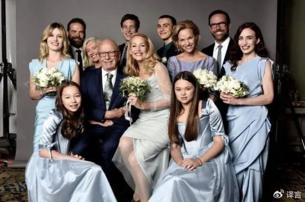 与第一任妻子离婚的同一年,默多克娶了比自己小13岁的记者,他们的婚姻维持了32年,育有伊丽莎白、拉克兰与詹姆斯三个孩子。
