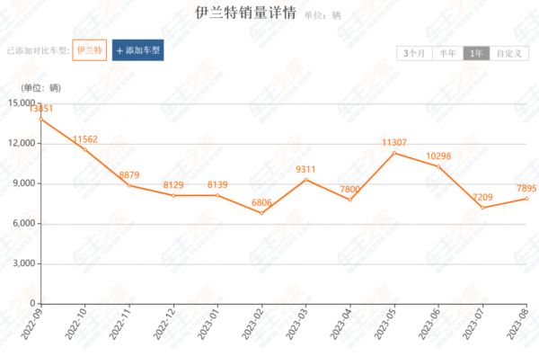 车主之家数据显示,北京现代目前销量最高的车型为伊兰特,占其销售份额达到43.85%。2023年8月伊兰特销量为7895辆,但从历史销售数据来看,伊兰特销量仍在阴跌。