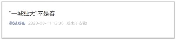 3月份芜湖官方发布的一篇《“一城独大”不是春》,公然挑战省会合肥的权威,几乎是明示要求省会分权,将其存在感拉满。