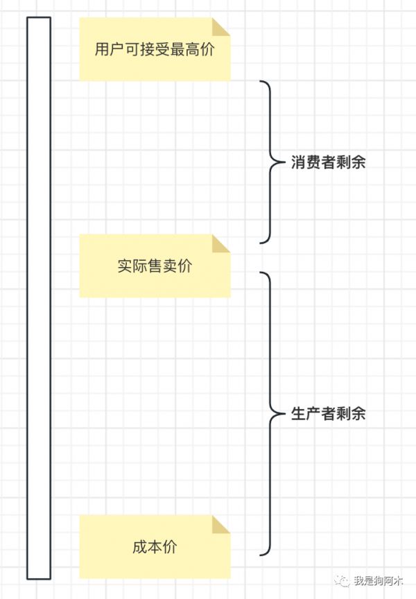 消费者剩余 = 用户可接受最高价 - 实际售卖价