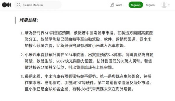 郭明錤提到,当前华为问界新 M7 销售超过预期,因其制造方面呈现出高度产业分工,象征中国电动车市场的竞争焦点已经开始转移至自动驾驶、软件、营销和渠道方面,这样的新型竞争格局,将有利于小米进入汽车市场。