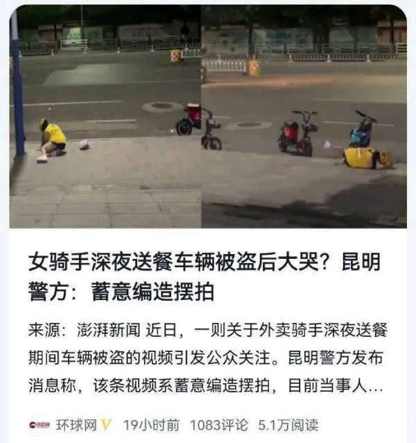 近几年,除了假扮外卖骑手,还有不少蓄意编造摆拍的事件引发了社会普遍关注。