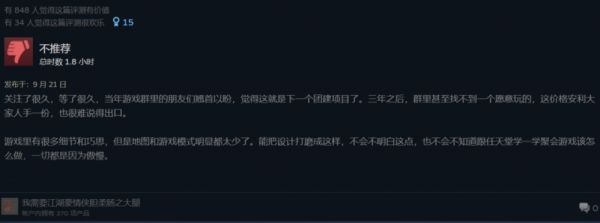 Steam游戏评论区的高赞中文评论。(图/Steam截图)