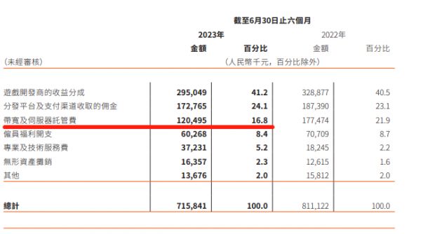 以体量更大的心动公司为例,心动公司目前运营20款网络游戏和29款付费游戏,据其2023年中报披露,“带宽及伺服器托管费”要占整体收入成本的16.8%。尽管《猛兽派对》的用户体量和服务器需求与心动公司这样的大厂商完全没有可比性,但至少足以说明,服务器费用是一个游戏不可忽视的成本构成之一。