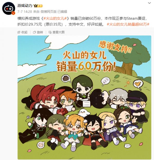 今年另一国产游戏爆款,售价远低于《猛兽派对》。(图 / 微博截图)