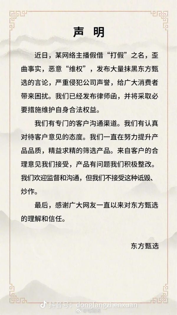 东方甄选回应博主“打假”风波:严重侵犯公司声誉……