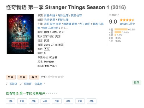 △ “黑马”剧《怪奇物语》第一季只有8集,一次性上新后引爆了观众口碑