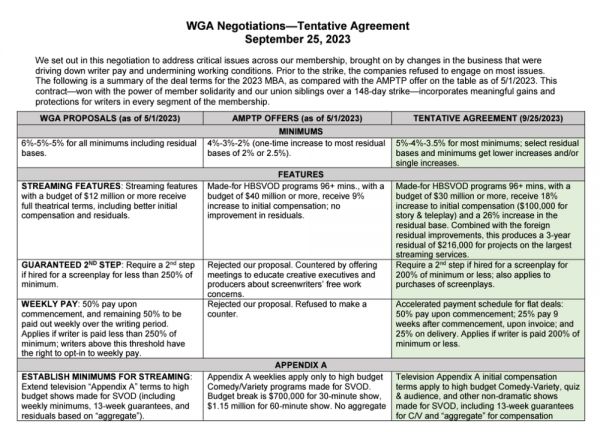 △ WGA与代表电影公司进行谈判的AMPTP达成的”临时协议”